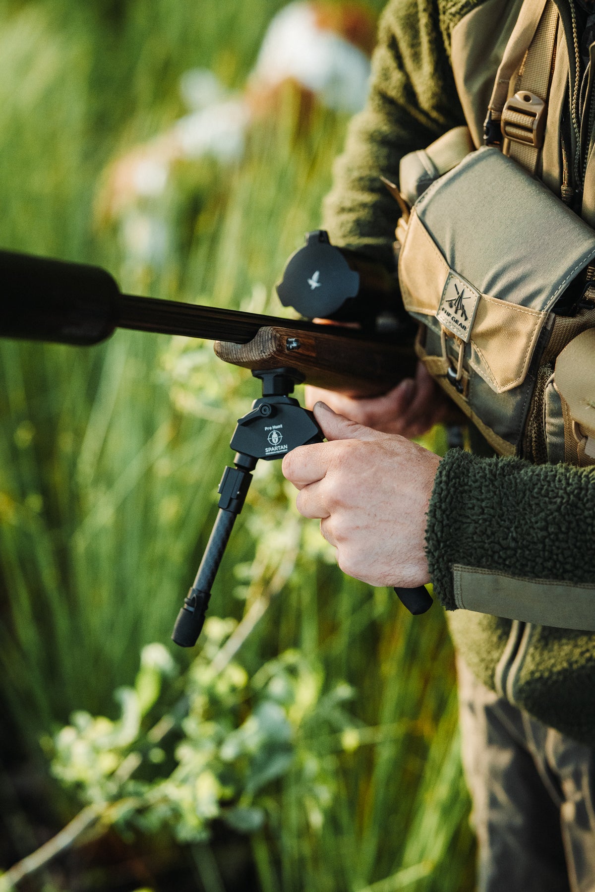The Javelin Bipod is intended to be fitted to the rifle when needed to make a shot. The magnet has sufficient strength to retain the bipod in the adapter during use, or if the rifle needs to be lifted to be repositioned. The bipod is not intended to be left on the rifle during transport or trekking, keeping your rifle clear of clutter and improving rifle carriage with a sling.