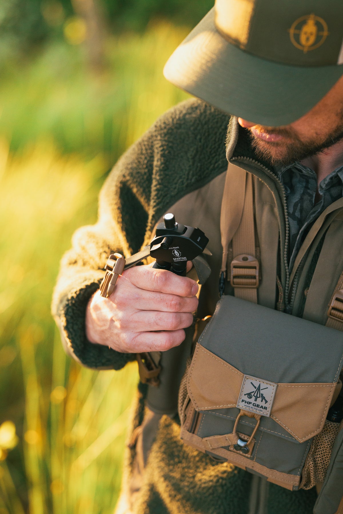 Attaches and detaches in seconds using rare earth magnets without the need for latches or buttons, perfect for high-paced hunts.
