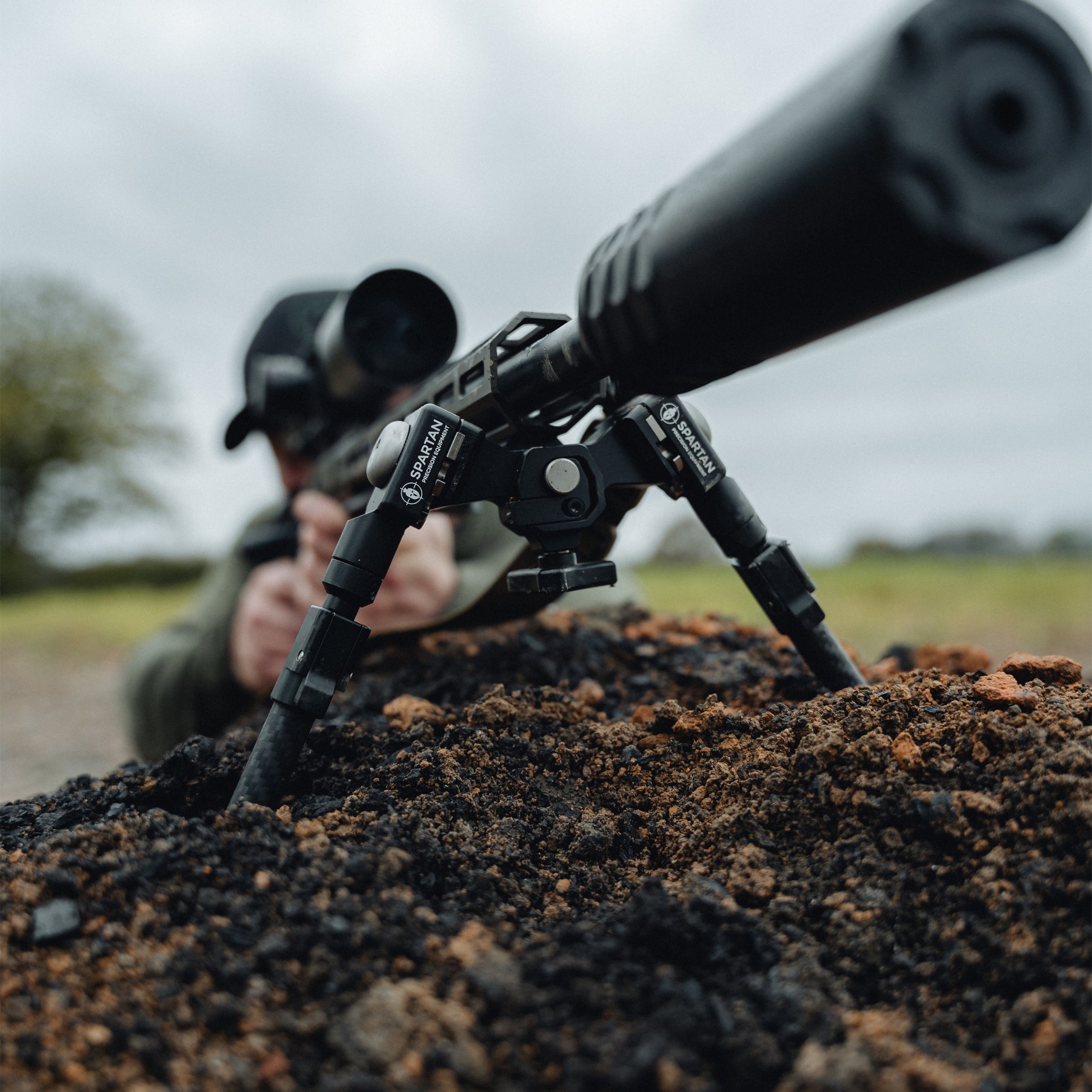 The horizontal spigot design shifts the fulcrum point towards the muzzle, enhancing stability. When combined with a wide stance and cradled design, this configuration allows for maximum stability by maintaining a low center of gravity.