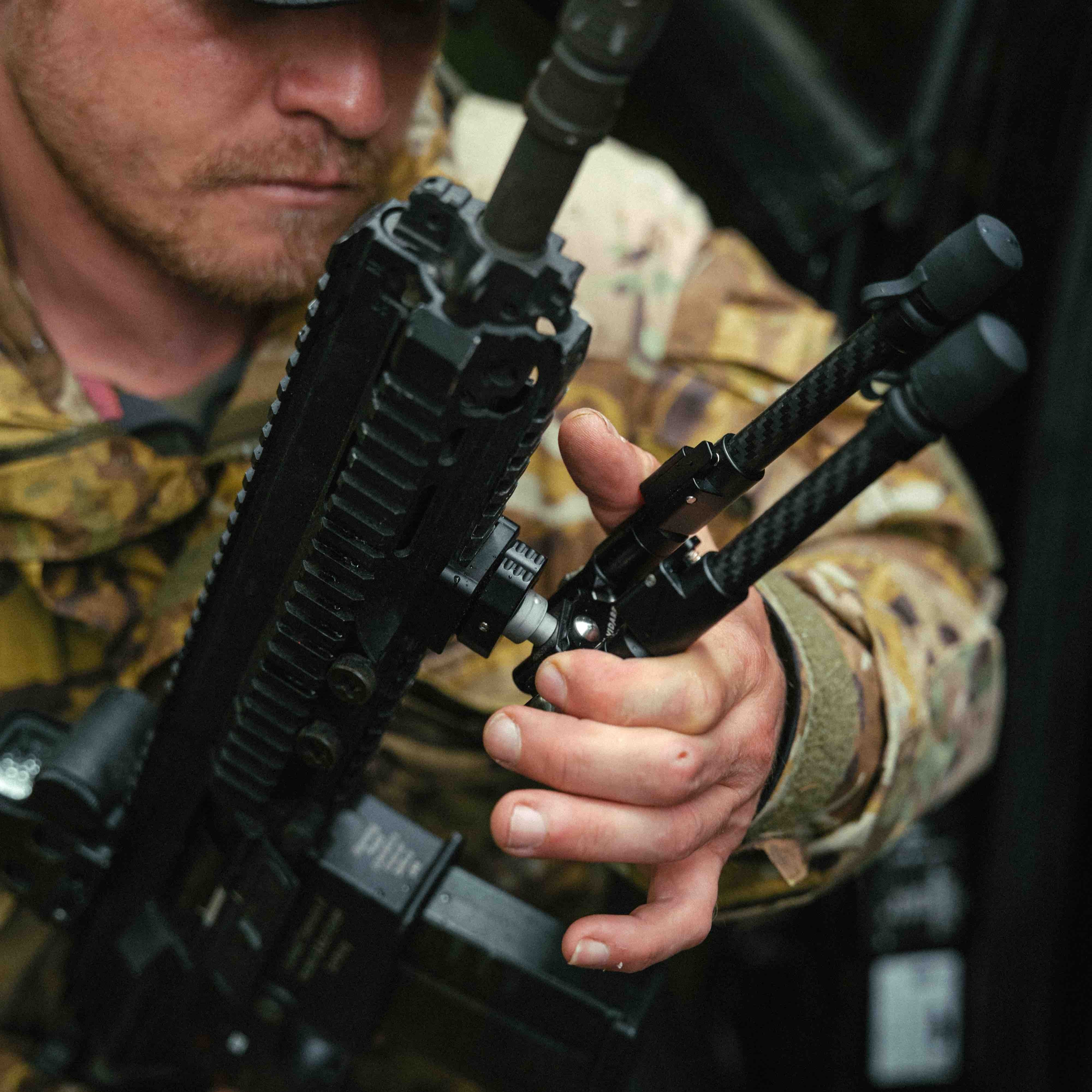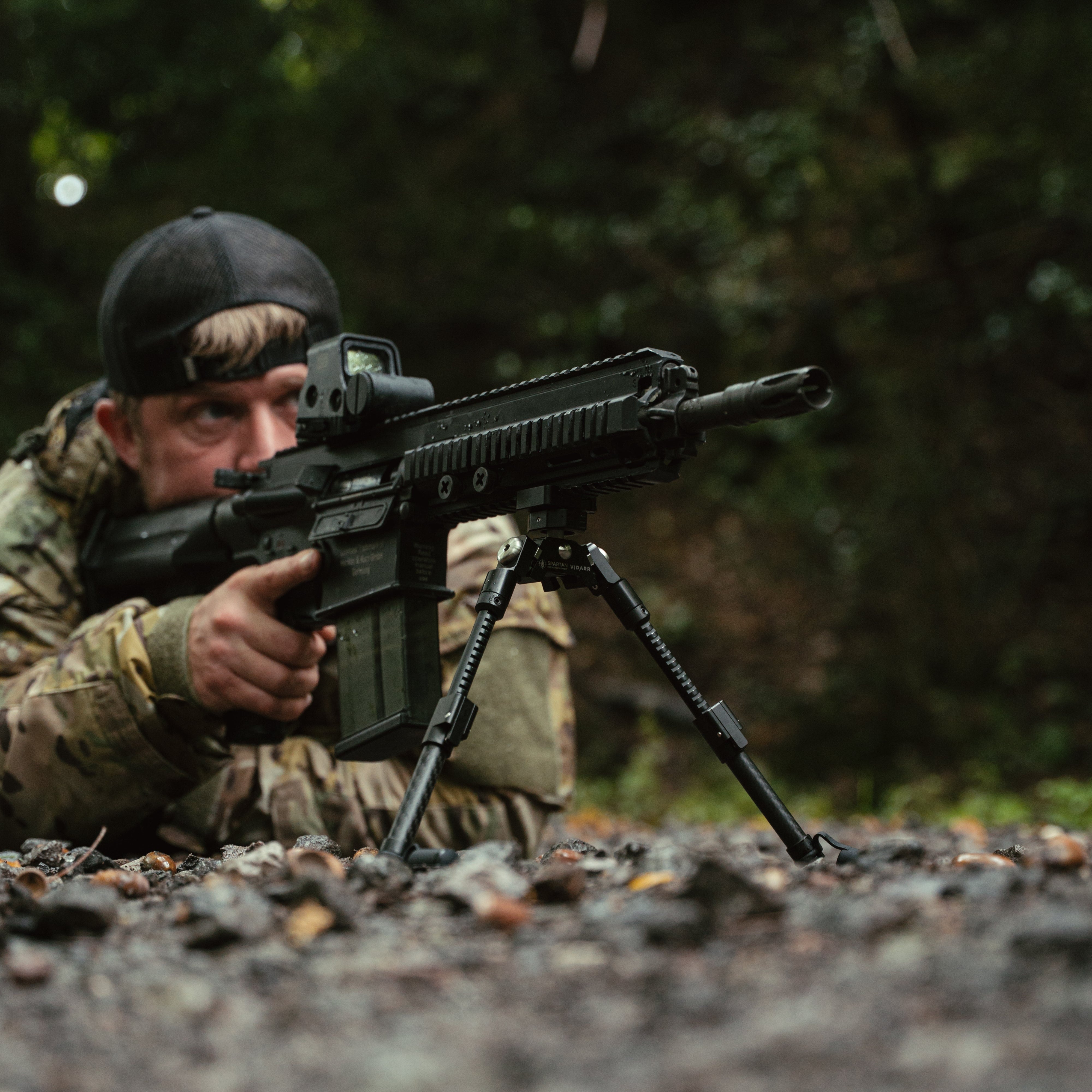 With the legs stowed in the rear position, they can be instantly deployed and locked to 90 degrees in a single motion, allowing rapid engagement of your target.