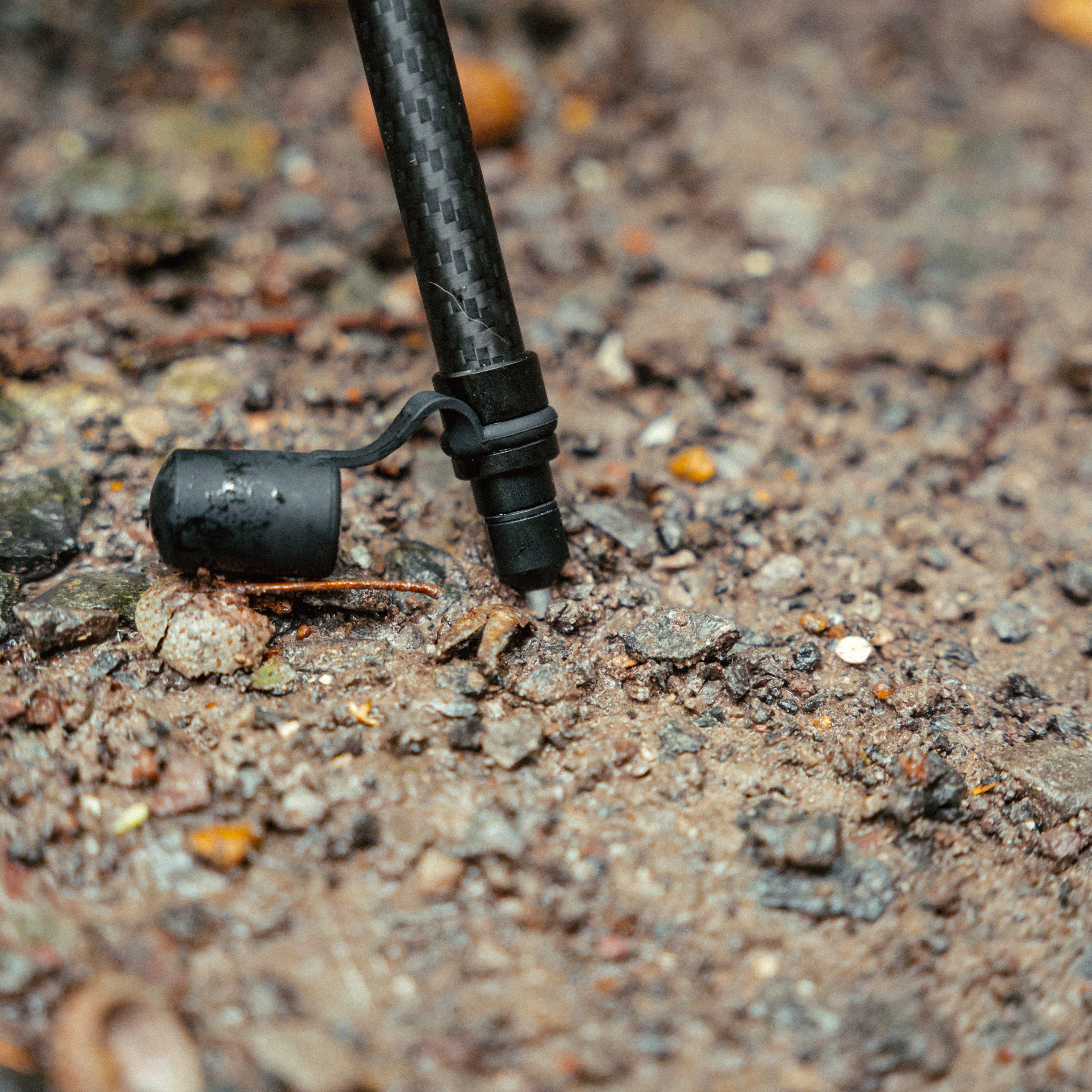 Durable tungsten carbide tips with tethered synthetic boots for grip in different environments.